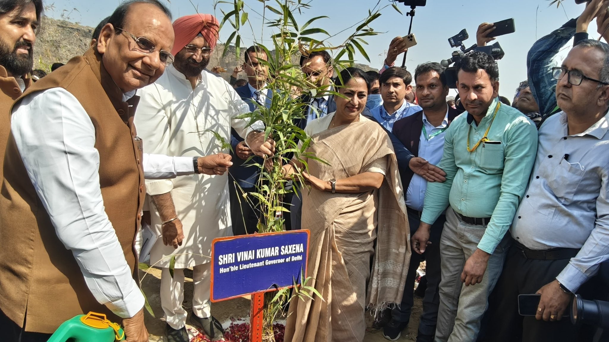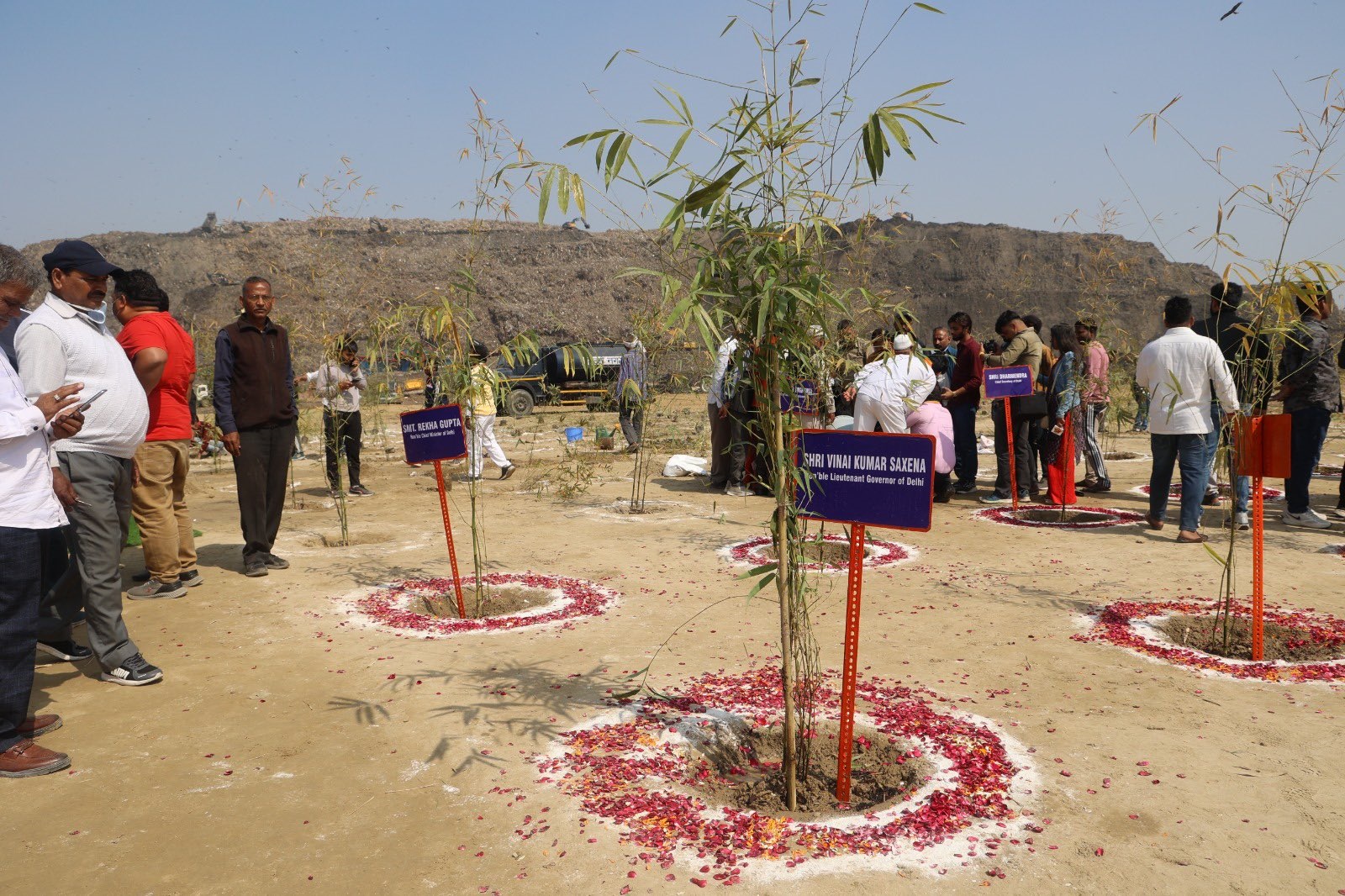 Hon’ble Lt. Governor planted bamboo trees at the Bhalswa Landfill Site along with Hon’ble CM Smt. Rekha Gupta, Forest & Environment, Minister, Shri Manjinder Singh Sirsa and area MP Shri Yogender Chandolia.